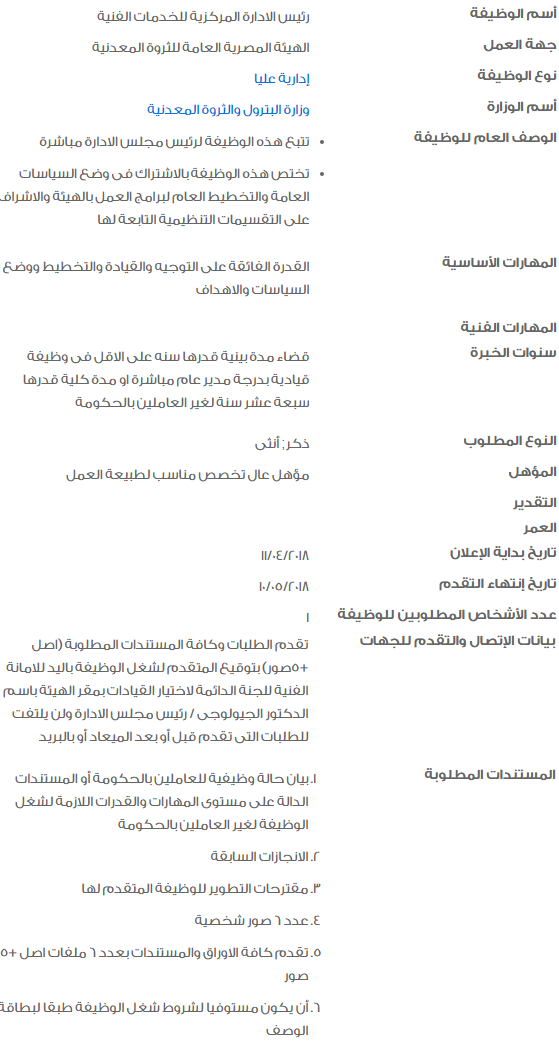 - قضاء مدة بينية لا تقل عن عام في وظائف من المستوى الوظيفي الأدنى مباشرة، أو ألا تقل الخبرة عن 17 عامًا تتفق مع طبيعة العمل بالنسبة لوظيفة مدير عام شئون الوحدات ذات الطابع الخاص.