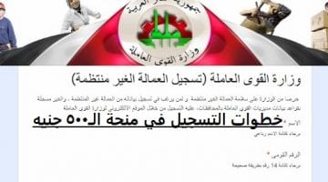 • خطوات التسجيل في في العمالة الغير منتظمة للحصول على منحة القوى العاملة تقدر بـ 500 جنيه