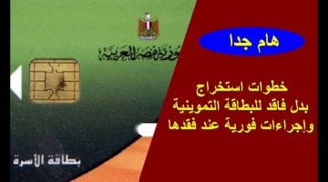 • استخراج بطاقات التموين بدل فاقد وتالف إلكترونياً خلال 15 يوم عبر موقع دعم مصر ودون الذهاب لمكاتب التموين