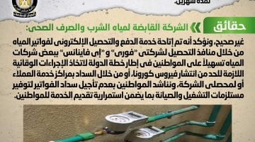 • الحكومة تنفي ما تردد حول تقسيط وتأجيل تحصيل فواتير مياه الشرب من المواطنين لمدة شهرين