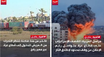 قناة العربية تعلن عن بدأ هدنة لمدة 5 ساعات في غزة لإدخال المساعدات واجلاء الأجانب