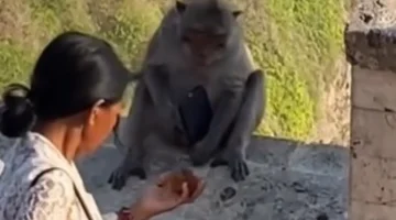 قرد يساوم سائحة سرق هاتفها مقابل الطعام