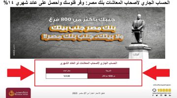 الحساب الجاري لأصحاب المعاشات بنك مصر: وفر فلوسك وأحصل على عائد شهري 14%