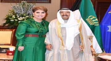 فجر السعيد تنشر صورة مع أمير الكويت تظهر فيها بعد شفائها