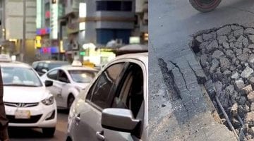 عاجل بالصور.. هبوط وانهيار بلاط كوبري محرم بيك وشلل مروري يصيب الطريق